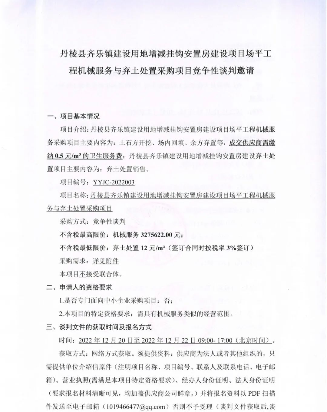 丹棱縣齊樂鎮(zhèn)建設(shè)用地增減掛鉤安置房建設(shè)項目場平工程機械服務(wù)與棄土處置采購項目競爭性談判邀請