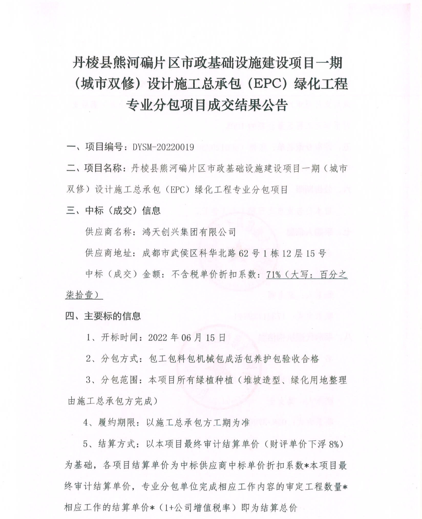 丹棱縣熊河碥片區(qū)市政基礎(chǔ)設(shè)施建設(shè)項目一期(城市雙修)設(shè)計施工總承包(EPC)綠化工程 專業(yè)分包項目成交結(jié)果公告