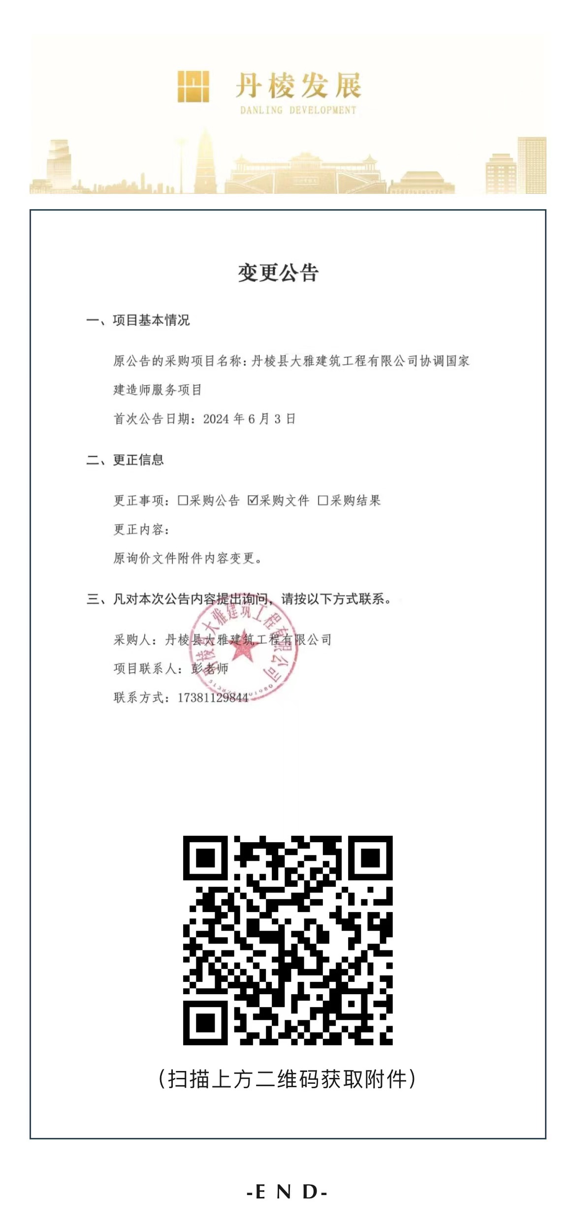丹棱縣大雅建筑工程有限公司協(xié)調(diào)國家建造師服務(wù)項目變更公告