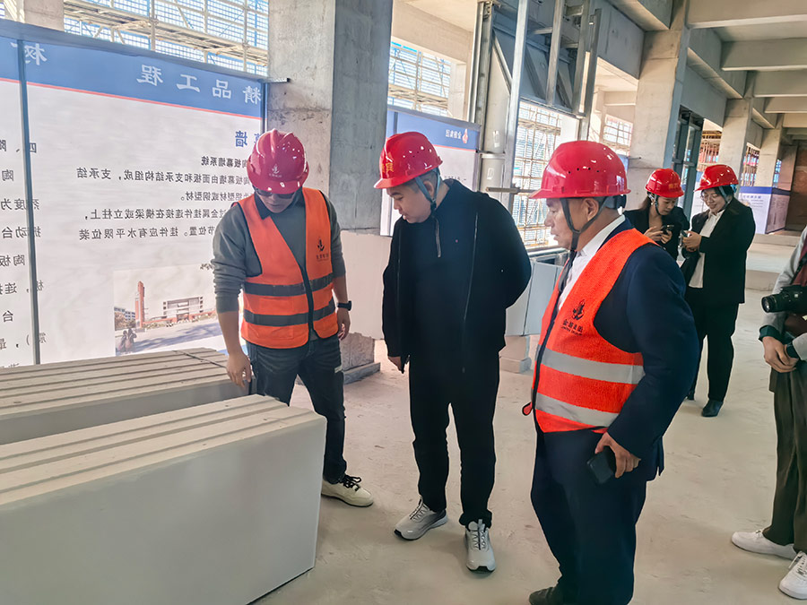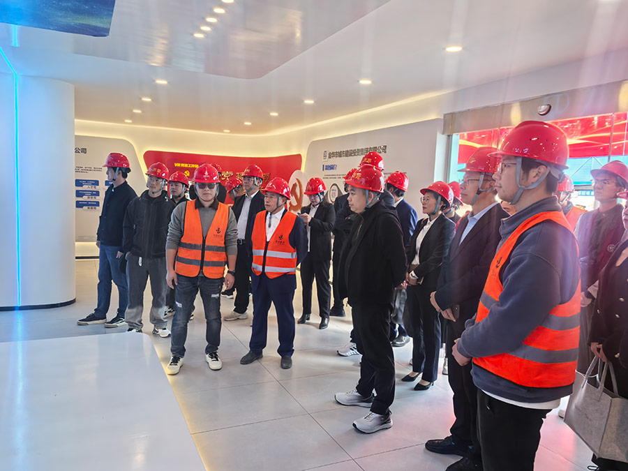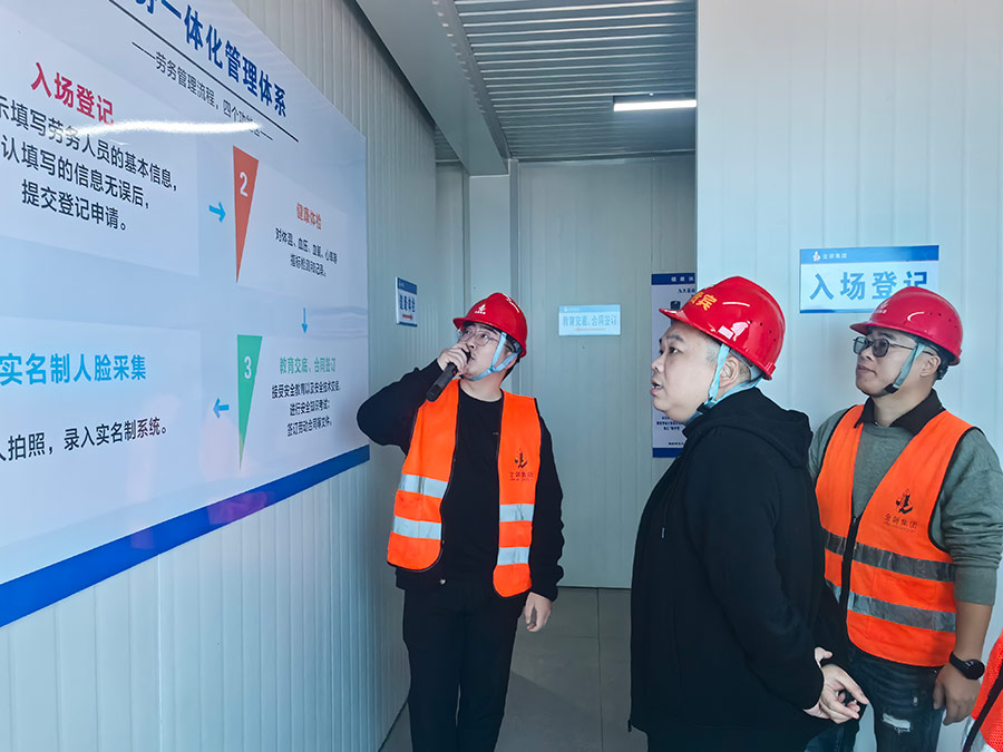 交流首先在金華市外國語學(xué)校新建項(xiàng)目現(xiàn)場拉開帷幕,張海鋒一行在集團(tuán)副總經(jīng)理金忠祥的陪同下,深入?yún)⒂^了智慧工地指揮中心、勞務(wù)一體室、高支模展示區(qū)、智能電梯展示區(qū)、有限空間展示區(qū)、可調(diào)盤扣外架體系展示區(qū)、工藝樣板展示區(qū)等多個(gè)區(qū)域。張海鋒一行不放過任何一個(gè)細(xì)節(jié),在邊看、邊聽、邊問中,對(duì)金外項(xiàng)目的整體情況有了直觀的認(rèn)識(shí)。隨后,雙方在項(xiàng)目會(huì)議室進(jìn)一步開展交流。通過座談,讓他們更深入地了解了金外項(xiàng)目的施工工藝、項(xiàng)目管理重難點(diǎn)以及特色亮點(diǎn)做法。