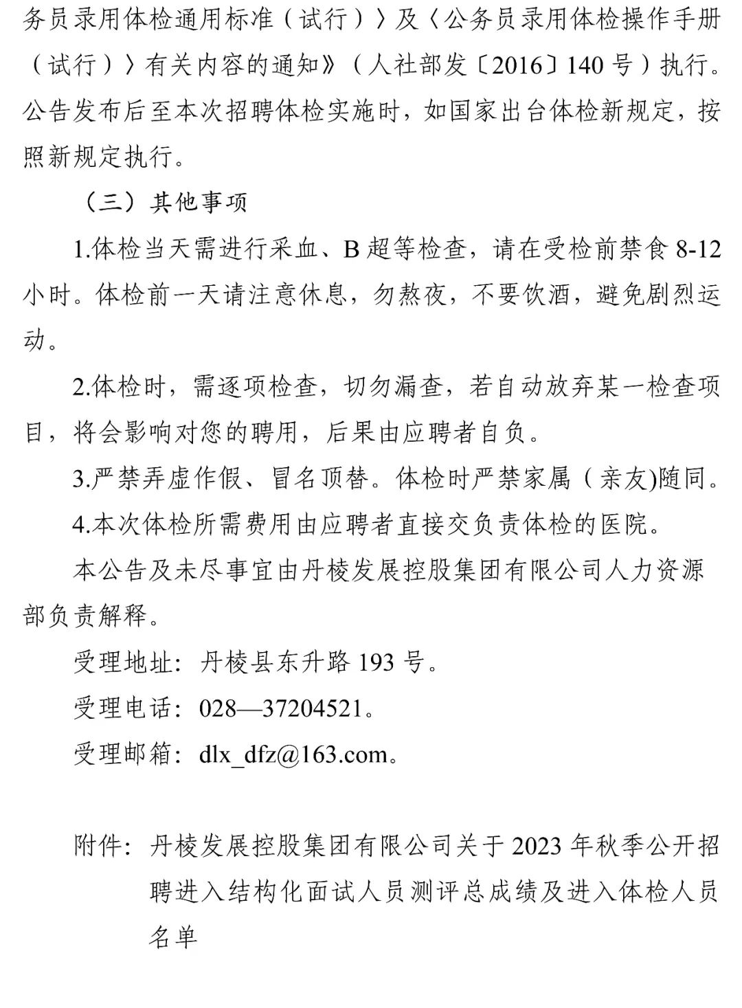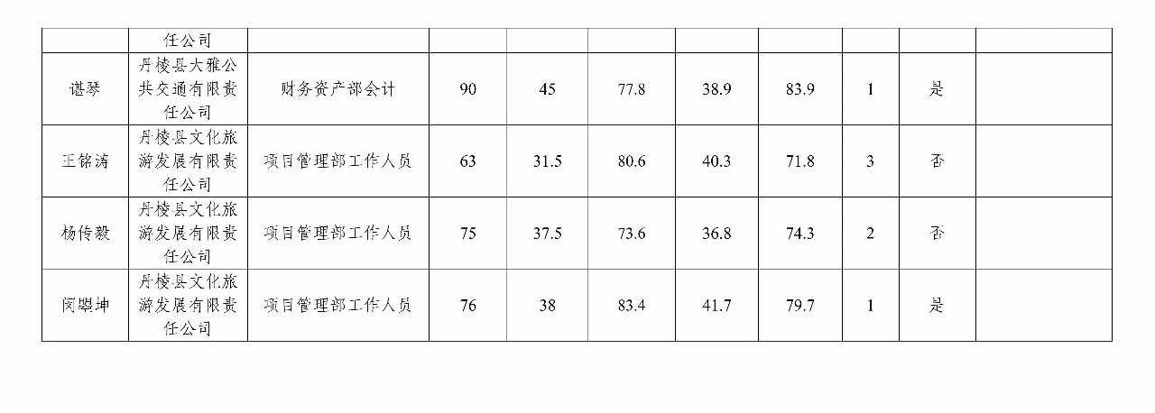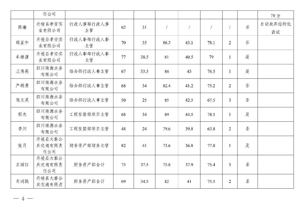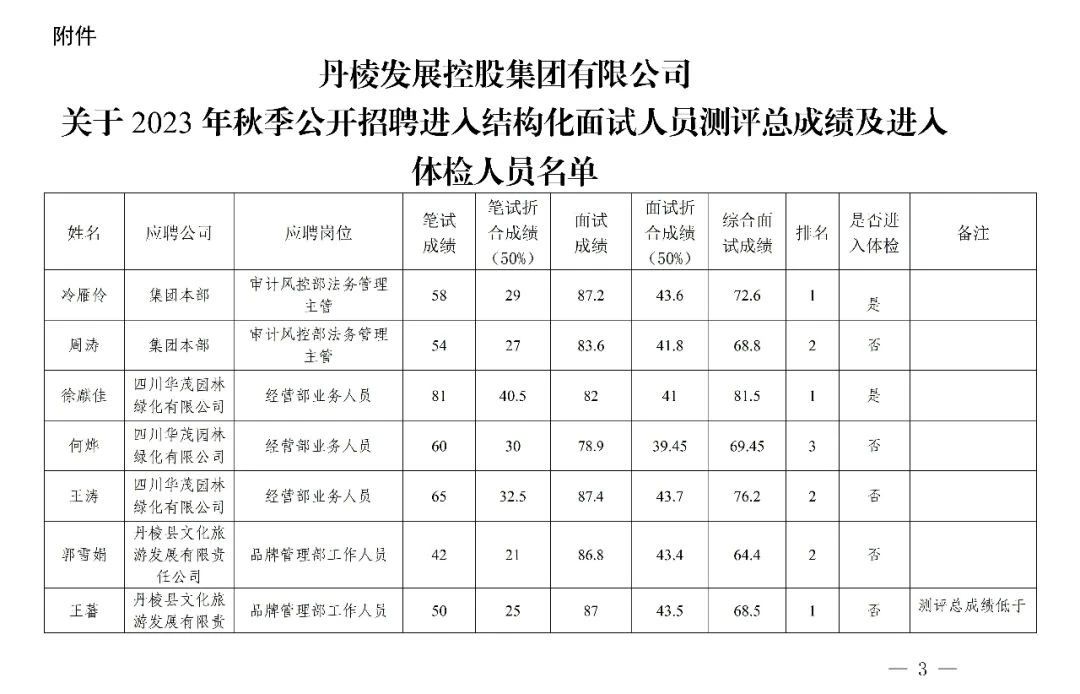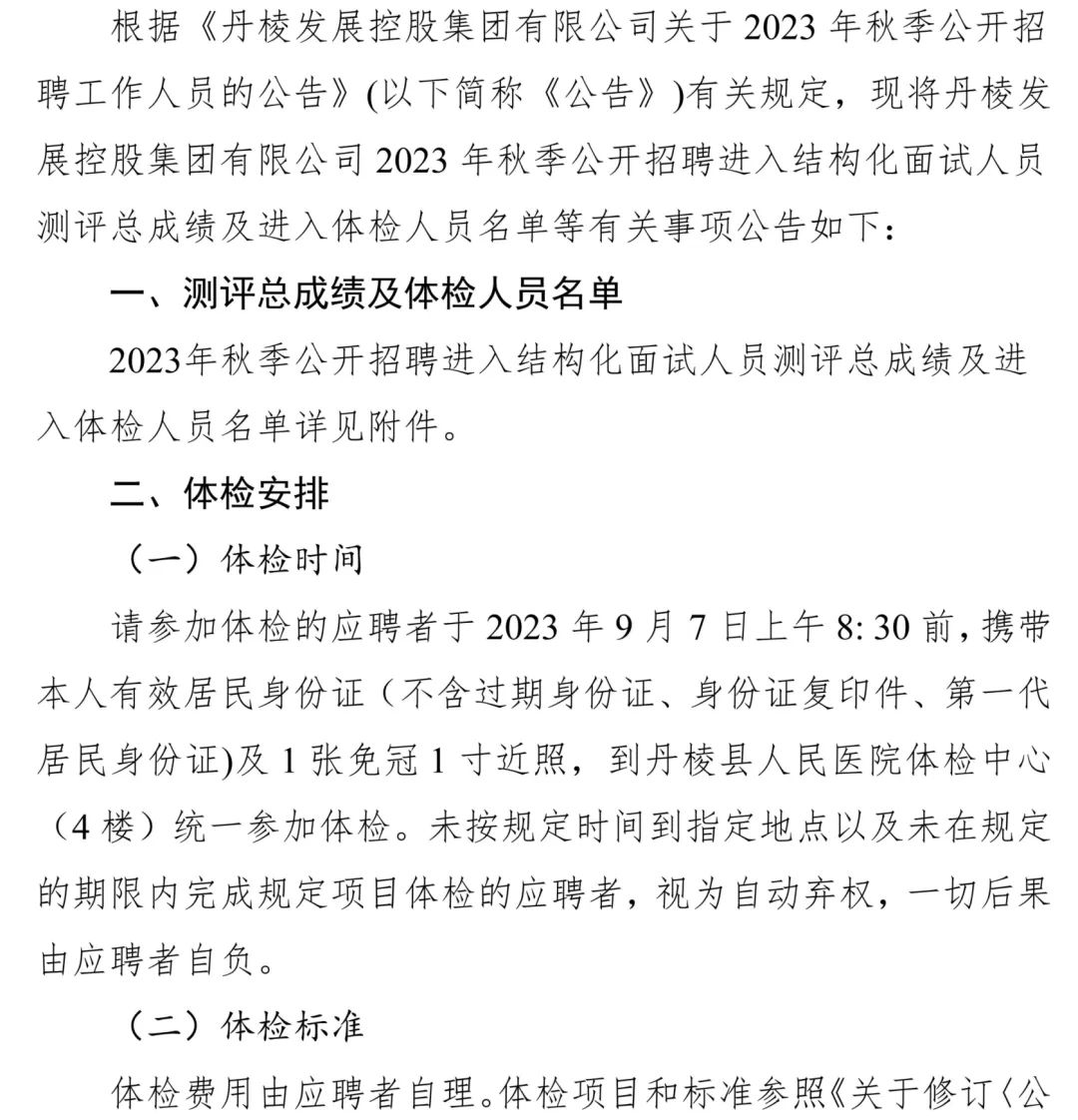 丹棱發(fā)展控股集團(tuán)有限公司關(guān)于2023年秋季公開招聘進(jìn)入結(jié)構(gòu)化面試人員測(cè)評(píng)總成績(jī)及進(jìn)入體檢人員的公告