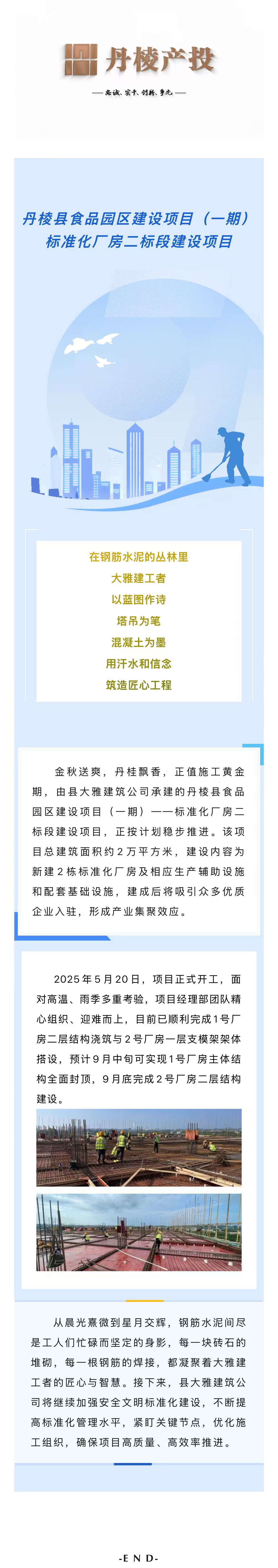 【縣大雅建筑公司】丹棱縣食品園區(qū)建設項目(一期)——標準化廠房二標段建設項目穩(wěn)步推進