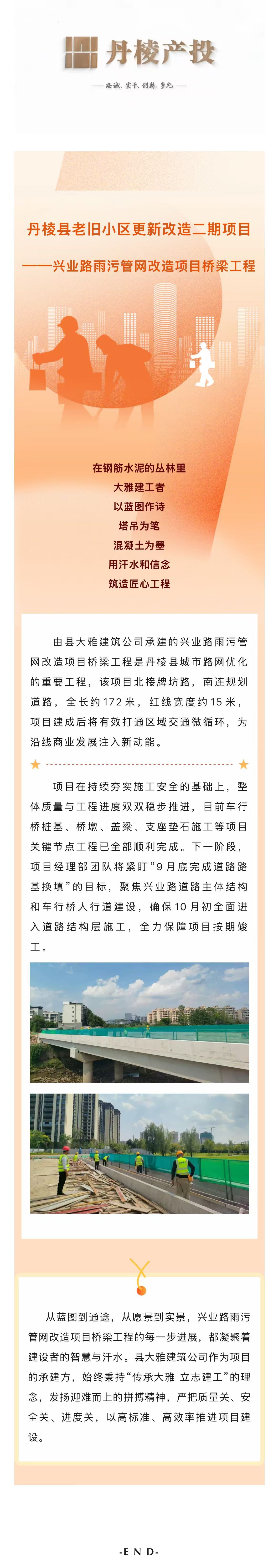 【縣大雅建筑公司】丹棱縣老舊小區(qū)更新改造二期項目—興業(yè)路雨污管網改造項目橋梁工程全力推進中