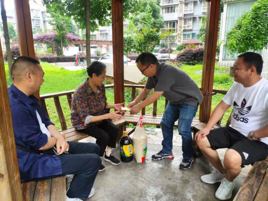 為紀(jì)念建黨100周年,繼承弘揚黨的光榮傳統(tǒng)和優(yōu)良作風(fēng),充分體現(xiàn)黨組織對黨員的關(guān)懷與愛護(hù)。丹發(fā)展公司積極對接齊樂鎮(zhèn)東升社區(qū),在6月18日當(dāng)天,丹發(fā)展公司黨支部書記趙勇同志、副總經(jīng)理熊鷹睿同志一行先后走訪慰問了邱昌賢、嚴(yán)成甫和趙玉華三位老黨員同志。