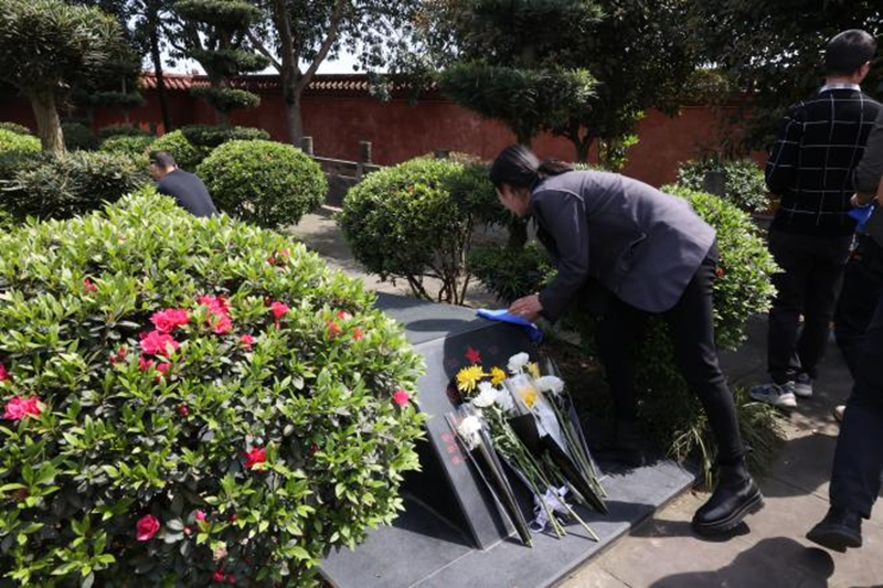 在莊嚴聳立的革命烈士紀念碑前,全體人員整齊列隊、神情肅穆,向革命先烈默哀致禮并敬獻鮮花。隨后,通過重溫入黨誓詞、擦拭烈士墓碑、學習先烈事跡等形式表達對英烈的深切緬懷和崇敬之情。