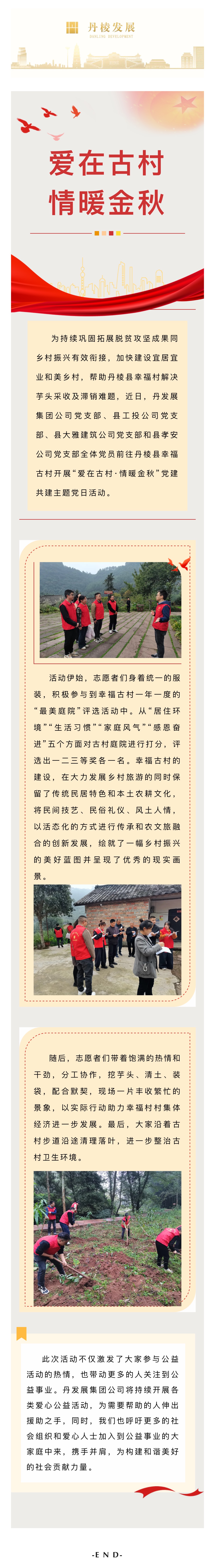 結(jié)對(duì)共建,共育共進(jìn)|丹發(fā)展集團(tuán)公司黨支部開(kāi)展“愛(ài)在古村·情暖金秋 ”黨建共建主題黨日活動(dòng)