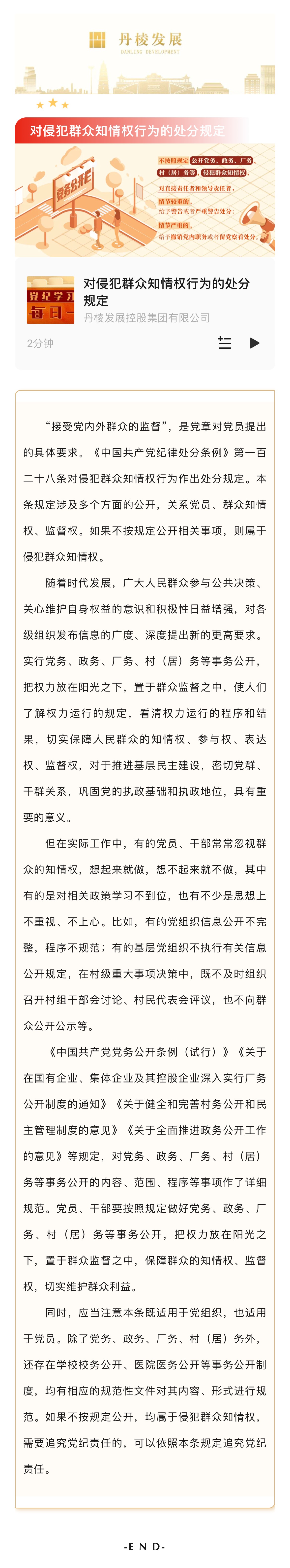 【黨紀(jì)學(xué)習(xí)教育】每日一課丨對侵犯群眾知情權(quán)行為的處分規(guī)定